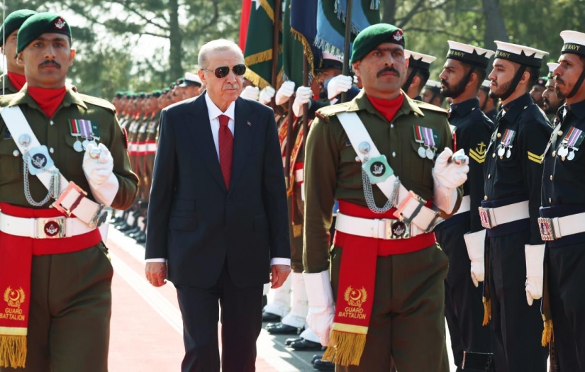 Cumhurbaşkanı Recep Tayyip Erdoğan, resmi temaslarda bulunmak üzere gittiği Pakistan'da, Başbakan Şahbaz Şerif tarafından resmi törenle karşılandı.