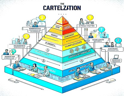 Kartelleşme her alanda kendini gösterebilir. Örneğin, eğitim, sağlık, teknoloji, tarım gibi… Kartel anlayışının çıkış noktası şirketleşmedir. Şirketleşme, ahlaki rekabet olduğu sürece sürdürülebilirliği olsa da rakiplerini saf dışı ederek TEK ‘ ele düşürmek, toplamak kartelleşmeye zemin hazırlar. İşte, burada demokrasinin ana kuralı olan çok seslilik ve halkın yönetime ortak olması kartelleşmenin panzehiridir. Yalnız, demokrasinin zayıf yanları da vardır. Yönetimlerini seçen halkın bilinçli ve okuduğunu anlama, sorgulama kabiliyeti olması gerekir.