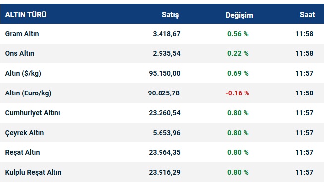 Gram altın, 3 bin 417 Türk Lirası ile rekor kırdı. Çeyrek Altın 5 bin 594 Türk Lirası'ndan fiyatlandı.