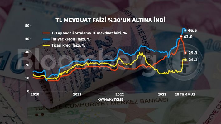 Türkiye Cumhuriyet Merkez Bankası (TCMB) verilerine göre 1-3 ay vadeli TL mevduatlarda ortalama mevduat faizi yüzde 30’un altına geriledi. Mevduatların en ağırlıklı olduğu bu vadede faizler yüzde 42 ile 23 yılın zirvesine çıkmıştı.