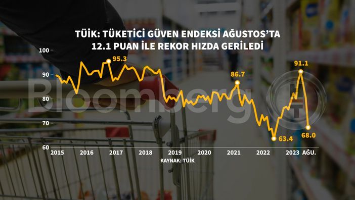 Türkiye İstatistik Kurumu (TÜİK) ve Türkiye Cumhuriyet Merkez Bankası (TCMB) işbirliği ile yürütülen tüketici eğilim anketi sonuçlarından hesaplanan Tüketici Güven Endeksi, Temmuz ayında 80,1 iken Ağustos ayında yüzde 15,1 oranında azalarak 68,0 oldu.