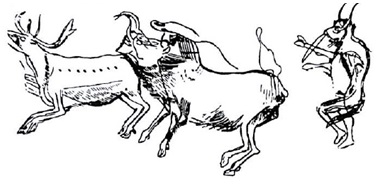 Bugün biz elimize bir kalem alır ve önümüze bir kağıt koyarsak, aklımıza gelen her şeyi yazabiliriz. Ancak harflerin bulunmadığı bir çağda böyle bir işlem nasıl yapılır? İşte bilginlerin, avcı, büyücü, şaman, hayvan-kişi adlarını verdikleri, mağara çağına BİRİLE (ait- Necdet Sumer-), acayip kişi resimleri aslında böyle bir gayretin sonucudur. Les Trois Freres Mağarasındaki resim bize Geyik Avlamak isteyen avcılara ressam tarafından verilen bir SABAQ’ı (ders- Necdet Sumer-) gösteriyor. Avcı, geyikleri korkup kaçmamaları için başına bir bizon maskesi geçirmiştir. Ressam böyle bir avcıya bakan bir geyiğin onu bizon zannedeceğini anlatmak için, avcıya bakan geyiğin de başına bir bizon maskesi geçirmiştir ve “işte, başınıza bir bizon maskesi geçirirseniz geyikler sizin bizon olduğunuzu zanneder, kaçmazlar” demek istiyor (Mirşan, 2000: 29). Bu mağara resimleri “Tamgaların” 18.000- 12.000 yıl önce buzul çağında yaşayan mağara kişileri tarafından şekillendirilmeye başlandığını kanıtlamaktadır (Mirşan, 2000: 30).