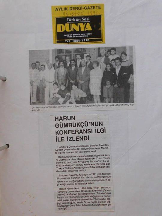 Bizler 24 sene öncesi BATTAM (Batı Trakya Türkleri Araştırma Merkezi) olarak bu gün yaşanabilecek olanları görüp, kamu oyuna duyurmuş idik... Almanya Münih'de Prof. Dr. Harun Gümrükçü ile ilk defa olarak "Yeni Dünya Düzeni nedir..?" başlığı ile düzenlediğimiz konferansta da basının huzurunda insanlarımıza uyarılarda bulunduk..