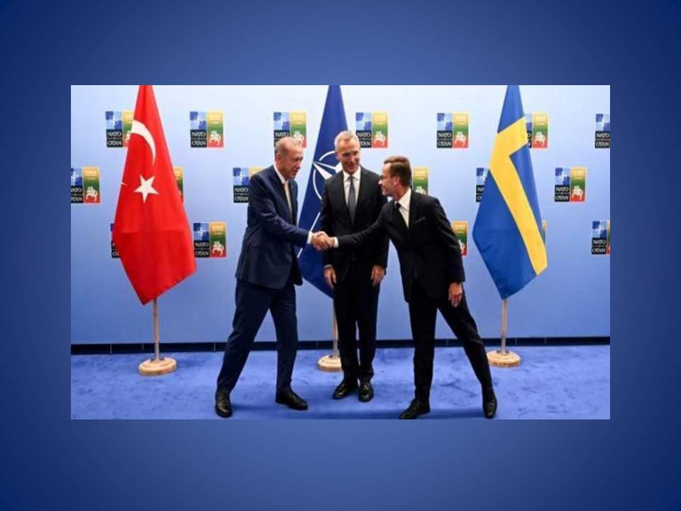 Özellikle Rusya’yı çevirmek politikasıyla sürekli genişleyen NATO, Finlandiya ve İsveç’in üye olmasını gündeme getirdi. Ancak 13 Mayıs 2022 tarihinde AKP genel başkanı buna karşı çıktı. Tayyip Erdoğan teröre destek verdiğini söylediği bu iki ülkenin NATO üyeliğine Türkiye’nin karşı olduğunu ve NATO konseyinde bu konuda olumsuz oy vereceğini açıkladı. 29 Mayıs 2022 tarihinde “başta ben olduğum sürece Finlandiya ve İsveç NATO'ya giremez” diyen Tayyip Erdoğan, 28-30 Haziran 2022 tarihlerinde Madrid’de yapılan NATO zirvesinde, Finlandiya ve İsveç’in NATO üyeliğine onay verdi.