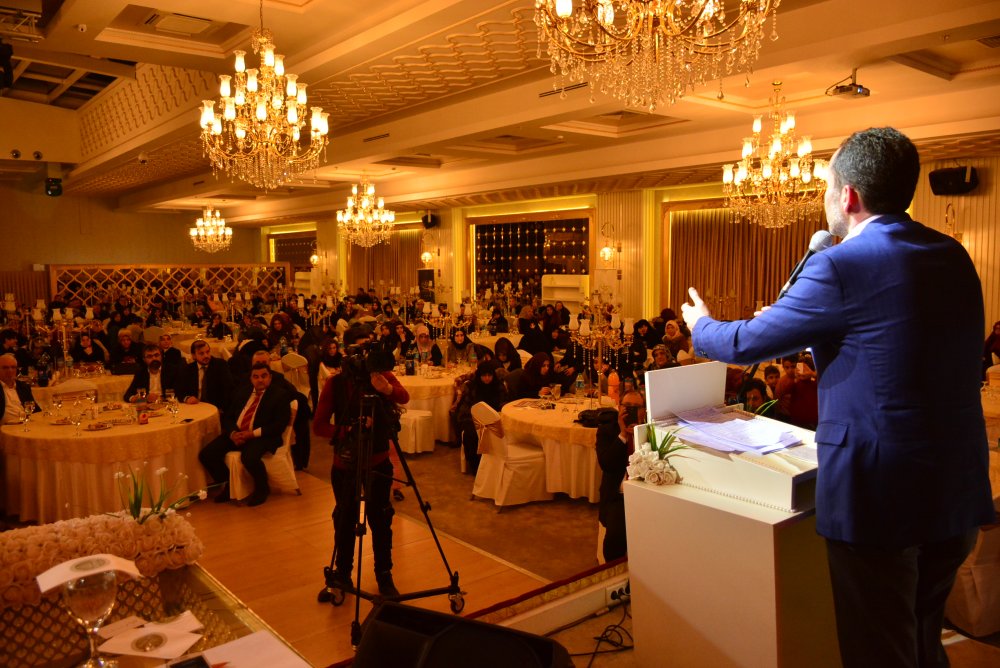 Divan oluşturulurken il başkanı Naim Öztürk’ün çağrısı ile biz de divana oturduk. İl başkanının açılış konuşmasından sonra ilçelerin raporlarını takdim etmesi ve ardından geceye özel hazırlanan sine vizyon gösterisi sonra genel başkanın kürsüye davet edilmesiyle salon heyecanlandı;