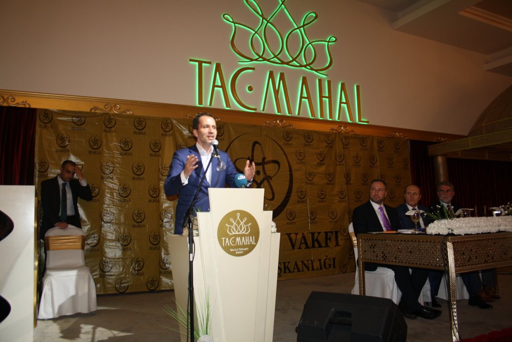 Prof. Dr. Necmettin Erbakan Vakfı Bursa Temsilciliğin düzenlediği toplantı Tac Mahal Salonunda Milli Görüşçülerin katılımıyla Agerçekleşti. Erbakan Vakfının durum değerlendirmesi yapılan gecede vakfın genel başkanı Dr. Muhammet Ali fatih Erbakan bir konferans verdi.