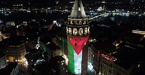 Galata Kulesi’ne Filistin bayrağı yansıtıldı