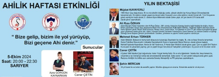 5 Ekim 2024 Cumartesi günü İstanbul Sarıyer Belediyesi’nin düzenlediği Ahilik Etkinliğinde “2024 Yılının Bektaşisi” seçilmem vesilesiyle yaptığım kürsü konuşmamı okuyucularımla da paylaşıyorum;