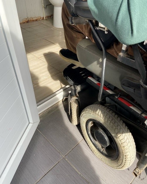 Fotoğraftaki gibi mesela Mudanya Meydanındaki engelli tuvaletinin girişine eşik koyanlar, tekerlekli sandalye ile girişi zorlaştırılıp yorgunu yokuşa sürüyorlarsa… (Mudanya Meydanı’nda yer alan engelli tuvaletindeki eşik sebebiyle iki kişinin uğraşısıyla güç bela girip çıkabildim. 31.03.2025)