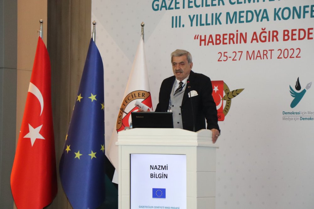 Konferansın açılış konuşmasını yapan Gazeteciler Cemiyeti Başkanı Nazmi Bilgin, proje kapsamında sağlanan desteklerle 60 internet sitesinin kurulduğunu, 450’yi aşkın gazetecinin 2 bin 220 haberine telif desteği sağlandığını, 140’tan fazla gazetecinin üç yılda 600’ü aşkın haberine yer verildiğini, Anadolu’daki pek çok cemiyetin ihtiyacı doğrultusunda kira ve faturalar konusunda mali destek sağlandığını belirtti. Ankara, Batman, Gaziantep, Kayseri, Siirt ve Mardin’de Basın Evlerinin kurulduğunu anımsatan Bilgin, Gazeteciler Cemiyeti Basın Evi bünyesinde tam teşekküllü bir stüdyo kurulduğunu, Gazeteciler Cemiyeti Akademi adı altında, alanında uzman akademisyenler tarafından verilen eğitim modüllerinin genç gazeteci adaylarına yedi gün 24 saat erişim imkanı sağladığını ve kısa süre içinde 1200’ü aşkın İletişim Fakültesi öğrencisinin bu eğitim modüllerinden yararlandığını vurguladı.