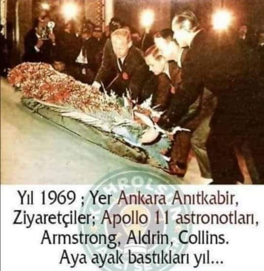 ABD heyetindeki bu 3 kişi, Apollo11 projesinin astronotları Neil A. Armstrong, Michael Collins ve Edwin E. Aldrin idi. Ay yolculuğundan 3 ay sonra, bir büyük Türk’e saygılarını sunmak için Ankara’ya gelmişlerdi. Saygılarını sunmak istedikleri bu kişi, 1930’ların başında Eskişehir’de, “Çok değil, yüz yıla kalmaz insanoğlu Ay’a gidecektir” açıklamasını yapan bir liderdi. Gittikleri yer elbette ki Anıtkabirdi ve manevi huzurunda saygı duruşunda bulundukları lider ise ‘Mustafa Kemal Atatürk’ tü…