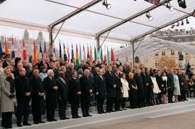 Paris’in ünlü Champs Elysees (Şanzelize) Caddesi'nde bulunan Zafer Takı’nda hazırlanan platformda, yağmur altında düzenlenen anma törenine yaklaşık 100 ülkenin devlet ve hükümet başkanları katıldı.