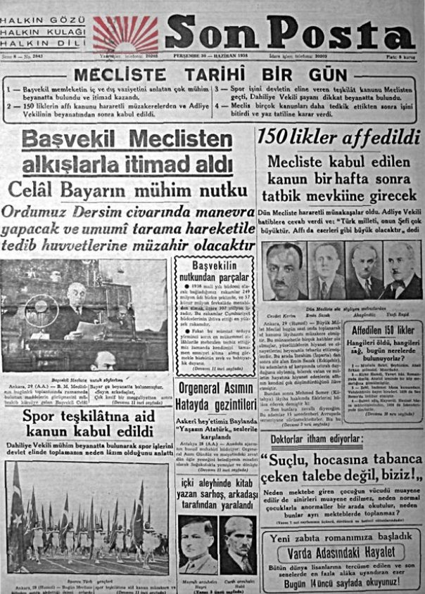 29 Haziran 1938: İstiklal Mahkemeleri’nde mahkum olanlar hakkında çıkarılan yasası.