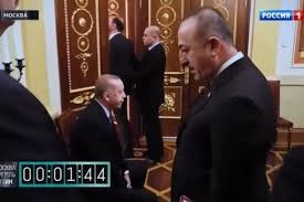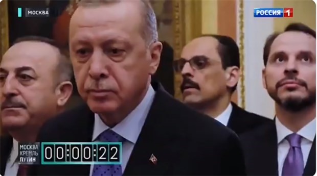Rus devlet televizyonu Rossiya 1, Cumhurbaşkanı Erdoğan ve bakanların, Rusya ziyareti sırasında Putin'in kapısında 2 dakika bekletildiği anların görüntülerini kronometre (sayaç) eşliğinde yayınlıyordu.