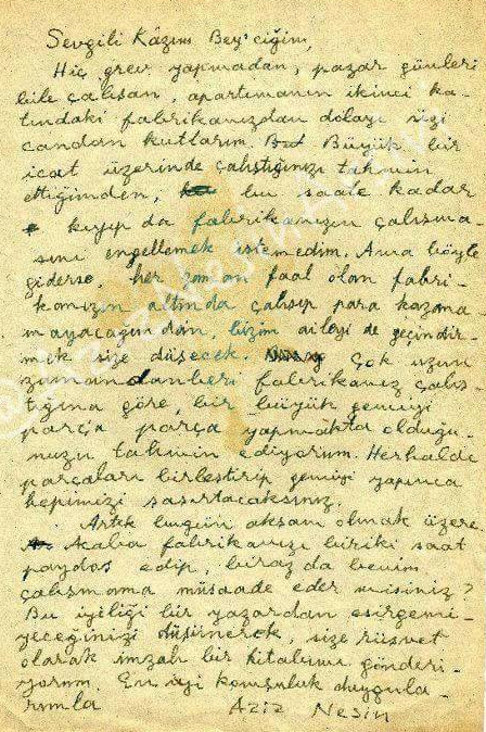 "Sevgili Kazım Bey’ciğim,