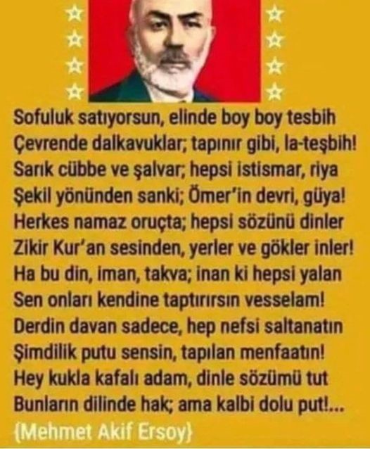 İstiklal Marşı’mızın şairi Mehmet Akif Ersoy, SAHAFAT adlı eserinde yer alan şiirinde bu din tüccarlarını bakın nasıl tarif ediyor: