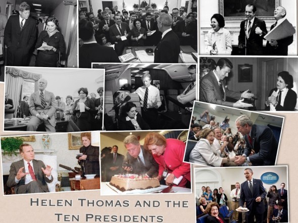 ABD Başkanı Reagan’ın arka çıktığı o ünlü kadın gazeteci Helen Thomas idi. Dünyanın en kudretli idarecilerine bile, hiç hoşlanmayacakları soruları sormaktan çekinmeyen Helen Thomas’ın Beyaz Saray tarihinde önemli bir yeri vardı. Başkanın basın toplantılarında açılış sorusunu soran ve toplantıyı ‘teşekkürler sayın başkan’ diyerek bitiren bir gazeteciydi O. Beyaz Saray’dan bir çok başkan, bir çok gazeteci gelip geçtiği halde Helen hep orada kaldı. Beyaz Saray geleneğinin öyle önemli bir parçası haline dönüştü ki, basın toplantılarının yapıldığı konferans odasında adına bir koltuk ayrılan gelmiş geçmiş tek gazeteci oldu. Diğer koltuklar ise gazetecilerin adlarına değil, çalıştıkları medya kurumlarının adına rezerve edildi hep.