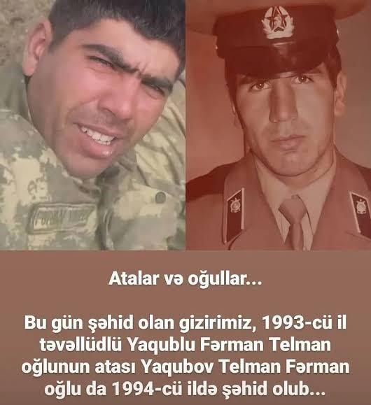 Ermeni saldırısı esnasında Azerbaycan Ordusunun kıdemli personeli Yaqublu Telman Ferman oğlu şehitlik zirvesine yükselmiştir. Bu Şehidimizin babası da 1994 yılında Birinci Karabağ savaşı esnasında Şehit olmuş idi.. Kahraman Şehitlerimize Allah'tan rahmet yakınlarına sabır diliyoruz.