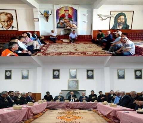 İşin en tuhaf yanı ise Tayyip Erdoğan’ın ziyareti öncesinde, cemevinde postun arkasında bulunan Atatürk, Hacı Bektaş Veli ve Hazreti Ali’nin resimlerinin kaldırılarak, yan duvara alındığı görüldü. Anımsanacağı üzere Tayyip Erdoğan daha önce papanın heykeli altında oturmuştu; Suudi Arabistan kralının fotoğrafı altında oturmuştu ve rahatsız olmamıştı. Cemevinde Atatürk, Hacı Bektaş Veli ve Hazreti Ali’nin resimlerinin altında oturmaması ilginçtir ama şaşırtıcı değildir.