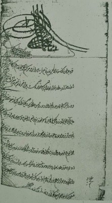 Sahip olduğu nişanı pek yüce, Ulu makamı Sultanlık ve parlak tuğrası cihanı tutmuş Hakan'ın emri şöyledir: