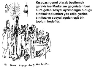 Engels’te diyalektik toptan bir realite görüşü iken, Marks’ta sosyal ilişkilerin değişmesiyle ilgili bir görüştür. “Kendi çağındaki sosyal değişmeleri açıklamak için kullanılan bir görüş değil, belirli şartlardaki, sanayileşme sırasındaki sosyal değişmeyi, bu arada da o çağda sanayileşen toplumlardaki sosyal değişmeyi açıklayan bir görüştür.” Marks, İngiliz toplumunun o dönemdeki ekonomik- sosyal ilişkilerini incelemiş ve kendince toplumdaki sosyal değişmenin yasalarını ortaya koymuştur. Marks’ın diyalektiği sadece bir sosyal değişme görüşüdür. Belirli tarihi dönemlerde ekonomik ilişkilerin, sosyal değişimleri belirlediği yasalar onun diyalektik görüşünü oluşturur. Marks, özlemini duyduğu sınıfsız bir toplum düzenini oluşturmak için, o dönemde sanayileşen belli bir toplumun olgularına bakarak ve bu olgulardan hareket ederek Marksizm’i inşa eder