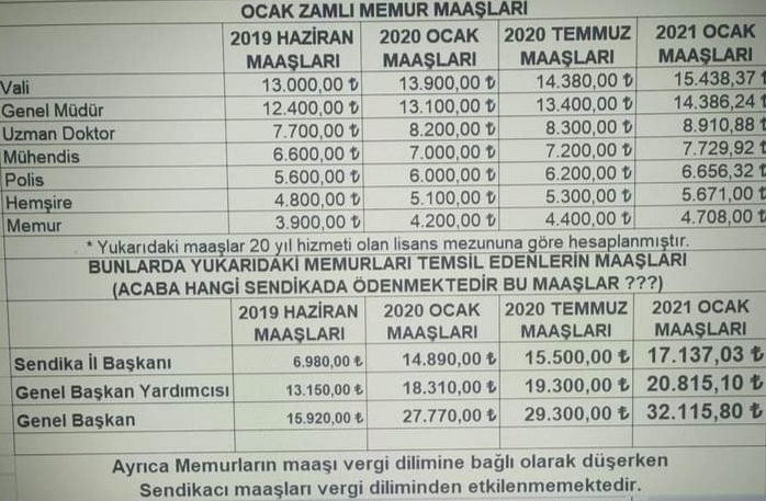 Tabloda Memur-Sen Genel Başkan maaşı 32.115,80 lira,