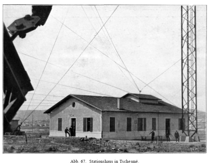 Bir Alman firmasıyla anlaşarak Kaş (Patara)-Mısrata, daha sonra Çeşme-Alaçatı Urfele’ye Telsiz-Telgraf vericisi kuruldu. Tesis 1905’de deneme yayınına başladı. 1912’ye kadar Trablusgarp Gelemiş hattı hizmet verdi. Vericisinin bir benzeri Çeşme’ye ve Alaçatı’ya kuruldu. .