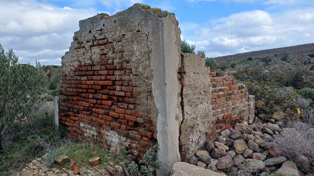 Şu an Alaçatı Reisdere yolu üzeri İstanbul dağı Verici mevkiindeyiz. Fotoğrafını gördüğümüz tek katlı çift kiremitli binanın kalıntısına ulaşmış durumdayız. Telsiz vericisini tellere bağlayan 3 Tonozu arıyoruz.