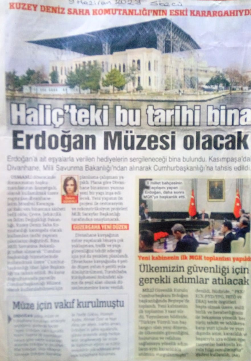 Sayın Cumhurbaşkanı’mızdan Divanhane’ye dokunmamasını, Osman Öndeş’in önerdiği gibi Divanhane’nin “Osmanlı’dan Cumhuriyet’e Divanhane ve Bahriye Nezareti Müzesi” yapılmasını arz ediyor. Recep Tayyip Erdoğan Müzesinin bağımsız bir yere yapılmasını istiyoruz.
