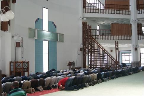 Hocamızın cemaate namaz kıldırdığı yerde kocaman bir HAÇ işareti bulunuyor. Ve yurdumuzun gariban halkı bu camiide Hristiyanların sembolü olan Haç işareti altında namaz kılıyor.
