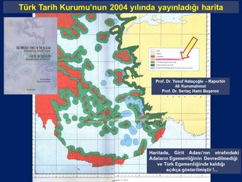 Türk Deniz Kuvvetleri, Genelkurmay Başkanlığı ve Dışişleri Bakanlığı’ndaki haritalarda Girit Adası’nın etrafında bulunan adaların EGAYDAAK ( Egemenliği Antlaşmalarla Yunanistan’a Devredilmemiş, Ada, Adacık ve Kayalıklar) Statüsünde yani Türk egemenliğinde olduğu açıkça gösterilmiştir. Ayrıca Prof. Dr. Yusuf Halaçoğlu’nun Raportörlüğünde Ali Kurumahmut ve Prof. Dr. Sertaç Hami Başeren tarafından yazılan ve Türk Tarih Kurumu tarafından 2004 yılında yayınlanan EGE’DE GRİ BÖLGELER Unutul(may)an Türk Adaları adlı kitaptaki haritada, Girit Adası’nın etrafında bulunan adaların Türk egemenliğinde olduğu gösterilmiştir.