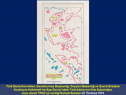 1958 Cenevre Kıta Sahanlığı Sözleşmesi Madde 1 ve 1982 BM Deniz Hukuku Sözleşmesi Madde 121’e göre adaların kıta sahanlığı vardır. Her iki sözleşme Türkiye tarafından imzalanmamış ancak sözleşme kurallarına uygun hareket edilmiştir. Türk Deniz Kuvvetleri, Genelkurmay Başkanlığı, Dışişleri Bakanlığı ve Ecevit- Erbakan Hükümeti tarafından Ege Denizi’ndeki Türk Adalarının kıta sahanlığı esas alınarak TPAO’ya ruhsat verilmiş ve kıta sahanlığı sınırı 24 derece boylamından geçirilmiştir.