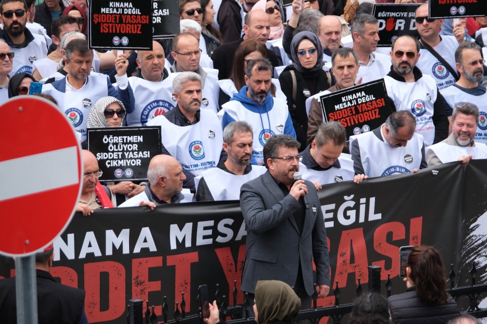 Eğitim-Bir-Sen Bursa 1 Nolu Şube İstanbul/Eyüpsultan’da eski bir öğrencinin okul müdürü İbrahim Oktugan’ı öldürmesi olayıyla ilgili Bursa İl Milli Eğitim Müdürlüğü önünde basın açıklaması düzenledi. Bugün tüm Türkiye’de iş bırakma eylemi gerçekleştiren sendika üyeleri, eğitimcilere gösterilen şiddetin önüne geçmek adına 10-17 Mayıs tarihleri arasında imza kampanyası düzenleyecek. Çok sayıda üyenin katıldığı eylem, “Canımız yanıyor, kanımız akıyor”, “Susma haykır, şiddete hayır”, “Dur de dur de şiddete dur de”, “Öğretmeni şiddete teslim etmeyin”, “Öğretmen ölüyor, Meclis uyuyor”, “Duy Meclis duy, sesimizi duy”, “Gör Meclis gör, hâlimizi gör”, “Kınamayı bırakın, yasamızı çıkarın” sloganları ile başladı. Basın açıklamasında konuşan Memur-Sen Bursa İl Temsilcisi, Eğitim-Bir-Sen Bursa Nolu Şube Başkanı Ramazan Acar, eğitim camiası olarak hazin bir cinayet haberiyle sarsılmış bulunduklarını ifade ederek, “İstanbul/Eyüpsultan’da eski bir öğrenci okul müdürü İbrahim Oktugan’a silahla saldırıda bulunmuş, ağır yaralı olarak hastaneye kaldırılan okul müdürü kurtarılamayarak vefat etmiştir. Meslektaşımıza Allah’tan rahmet, ailesine ve bütün eğitim camiamıza başsağlığı diliyoruz” dedi.