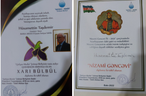 adlı takdir görülen şahıslara da Har-ı Bülbül ve Nizami Gencevi başarı ve teşekkür sertifikaları verildi.