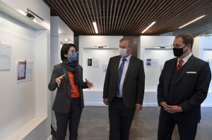 Konuşmaların ardından açılış kurdelasını basın mensuplarıyla birlikte kesen protokol, sergide yer alan eserleri inceledi.