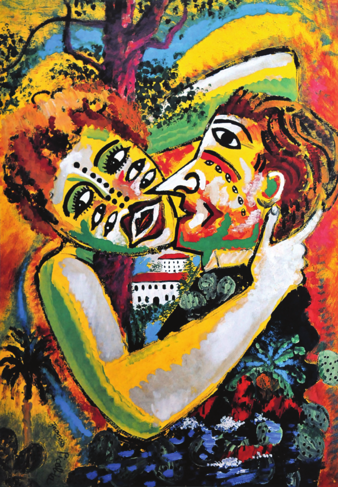 “Kadındaki çok gözlerin numaradan bir utangaç ve işve içerdiği, çok burun delikleri ise iyi koku aldığını açıklayabilir. Sevgisi göstermelik, gözleri yalandan utangaç rolü yapmaktadır. Erkeğin tepede gözün olması ise ilişkinin mantıkla yapıldığıni gösterir. Gözlerinin çok sayıda ve küçük olması işin bütünlükten uzak ve bilinçli olarak, kadının yapmacıklığını görmemezlikten geldiğini açıklayabilir. İkisinin de dudaklarının çok olması arada yalanların olduğunu işaret eder. Bize göre, kucaklaşmanın sevgiden değil ikisinin arasındaki faydalanma ile ilgili olduğunu söyleyebiliriz. Sebep de ikisinin arasındaki mülk görünmektedir. Erkeğin giysisinden zengin olduğunu anlıyoruz. Kadının zengin olma isteği bu yalancı tavrı açıklıyor. Erkek ise kadınla arasındaki ağaca önem vermektedir. Ağaç kök salmayı ifade eder. Yani erkekte kadından çocuklar beklemektedir.”