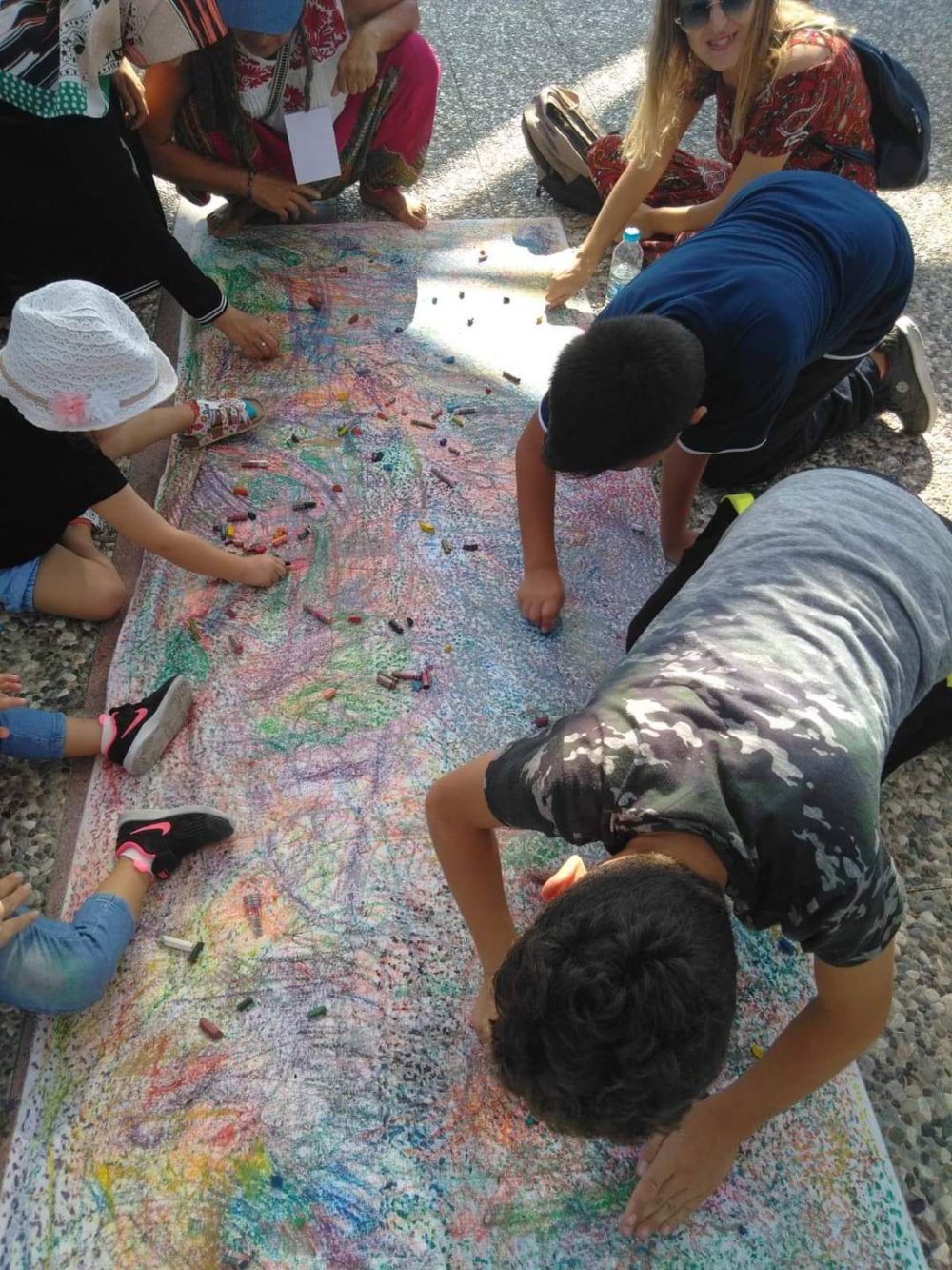 Renklerle akışkanlık için leke, sıçratma tekniğini kullanırız. Tuval etrafında koşma, dans etme gibi fiziksel hareketler yapılır. Örneğin ayrı iki tür müzikle dans ederiz, hareketleri karalama yaparak kâğıda aktarırız. Diğer bir uygulama da müziğin ritmine uyarak karalar, karalamanın hangi tür müzikle yapıldığını diğer katılımcılara tahmin ettiririz. Akışkan olan mürekkep ve sulu boyanın birbirine yumuşak şekilde akışını da gözler yaşamımızda da yumuşak ve olgun bakışı kullanmayı deneriz.