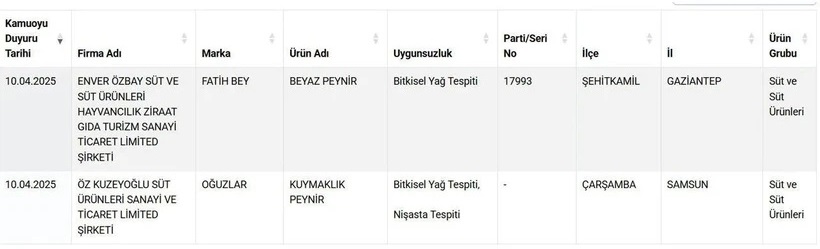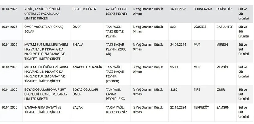 Tüketicilerin yoğun ilgi gösterdiği peynir ürünlerinde tespit edilen uygunsuzluklar arasında, süt yağı yerine bitkisel yağ kullanımı gibi aldatıcı uygulamalar öne çıktı. Bakanlık, vatandaşların sağlığıyla oynayan firmalar hakkında yasal sürecin başlatıldığını duyurdu.