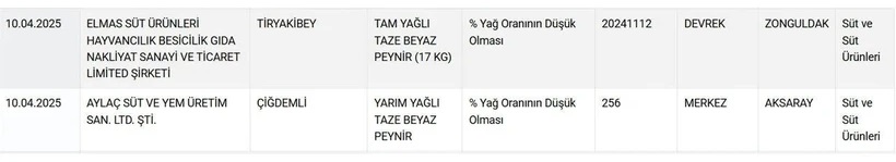 Tarım ve Orman Bakanlığı'nın düzenli olarak güncellediği “taklit ve tağşiş yapılan gıdalar” listesine 10 Nisan’da yeni ürünler eklendi. Yayınlanan son listede, 10 farklı peynir markasının yer alması kamuoyunda büyük şaşkınlık yarattı.