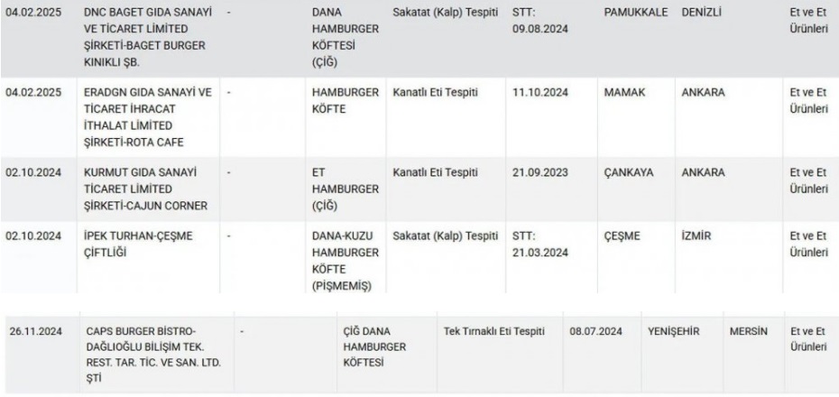İşte, hamburgerinde uygunsuzluk tespit edilen firmalar...