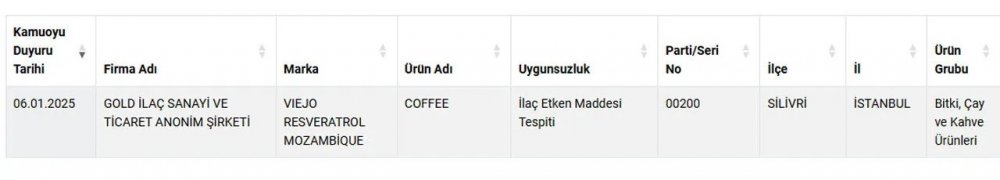 Bir firmanın kahvesinde "İlaç Etken Maddesi" tespit edildi.