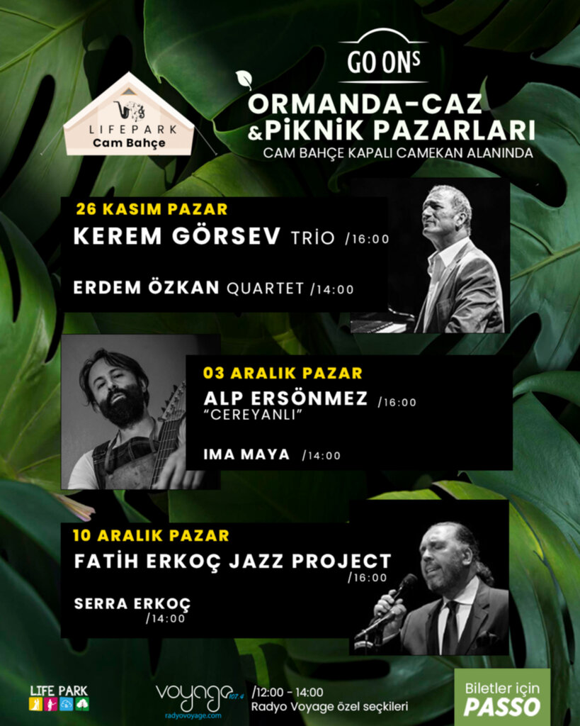 Türkiye'nin en yenilikçi etkinliklerinden biri olan ve piknik atmosferinde geçen “Ormanda Caz & Piknik”, her pazar günü caz müziğinin en seçkin isimleriyle Lifepark Cam Bahçe'de müzikseverleri ağırlıyor. Bu eşsiz etkinlik, piknik keyfi ve caz müziğinin harmonisini bir araya getirerek Türkiye'de bir ilki gerçekleştiriyor.