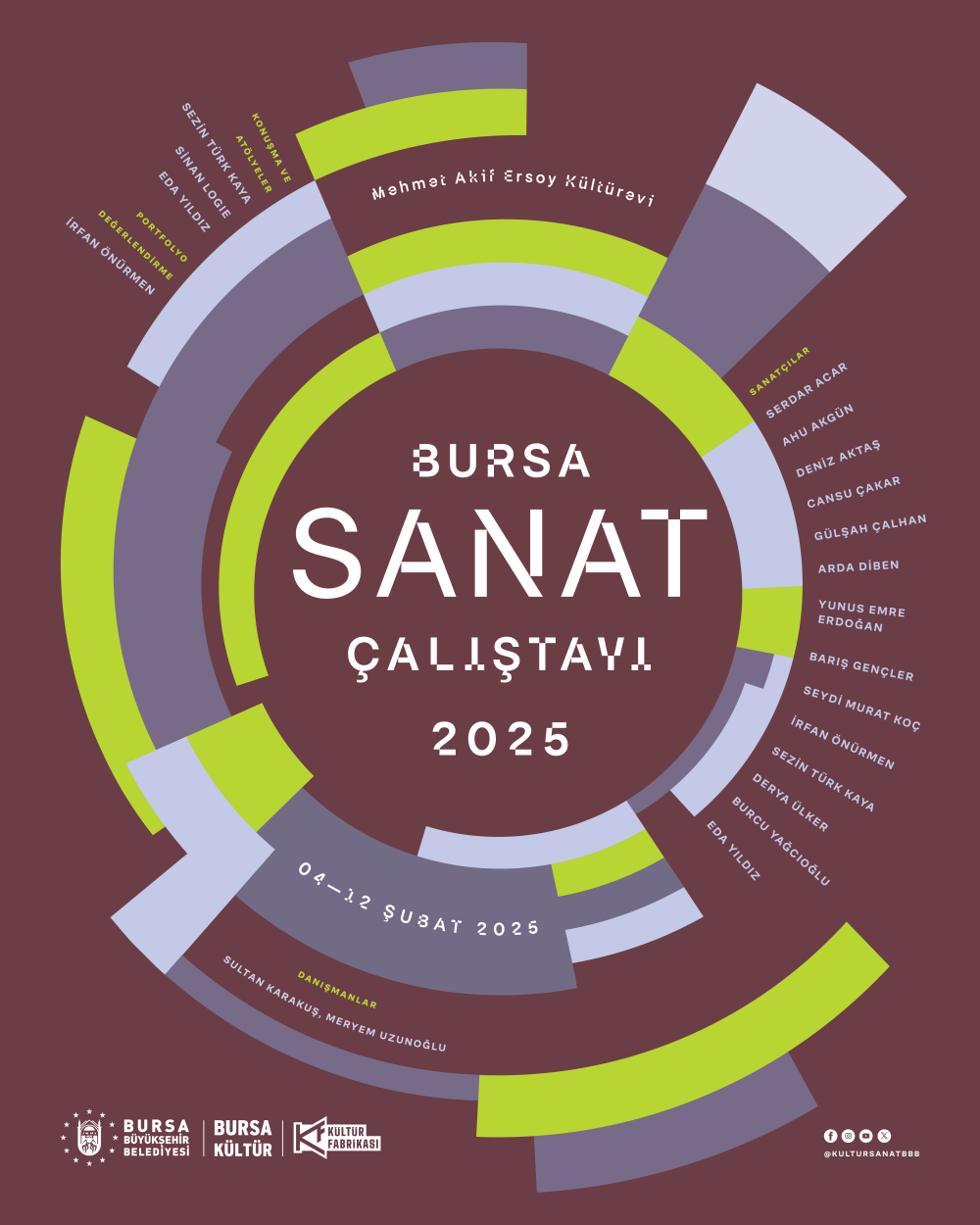 Bursa Sanat Çalıştayı 2025, sanatçıların özgün üretimlerini destekleme, karşılaşmalar için zemin hazırlayarak kentin sanatsal dinamiklerini harekete geçirme ve Bursa’nın sanat dünyasındaki konumunu güçlendirme amacı taşıyor. Çalıştay, mekân üzerine düşünen, kentsel çevreyi sorunsallaştıran, kentsel dönüşümün insan ve doğa üzerindeki etkilerini irdeleyen sanatçıları bir araya getirerek şehrin güncel meselelerini sanatsal düzlemde görünür kılmayı ve izleyicilerle derin bir diyalog zemini oluşturmayı hedefliyor. Farklı şehirlerden sanatçıların katılımıyla gerçekleşecek buluşma, Bursa’nın geleceğe dönük sanatsal vizyonunu şekillendirmede önemli bir adım misyonu taşıyor.