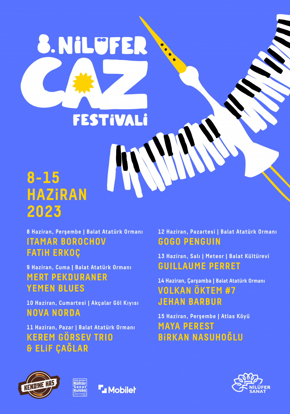 Bu sene 8. kez gerçekleşecek olan Nilüfer Caz Festivali 8-15 Haziran 2023 tarihleri arasında müzikseverlerle buluşuyor. Bursa kent kültüründe önemli bir yeri olmasının yanı sıra, aynı zamanda şehrin sınırlarını aşarak geniş kitlelerce 2016’dan beri ilgiyle takip edilen Nilüfer Caz Festivali, şehrin çeşitli açık hava mekanlarında gerçekleşecek konserlerle Bursa’ya yazı getiriyor.