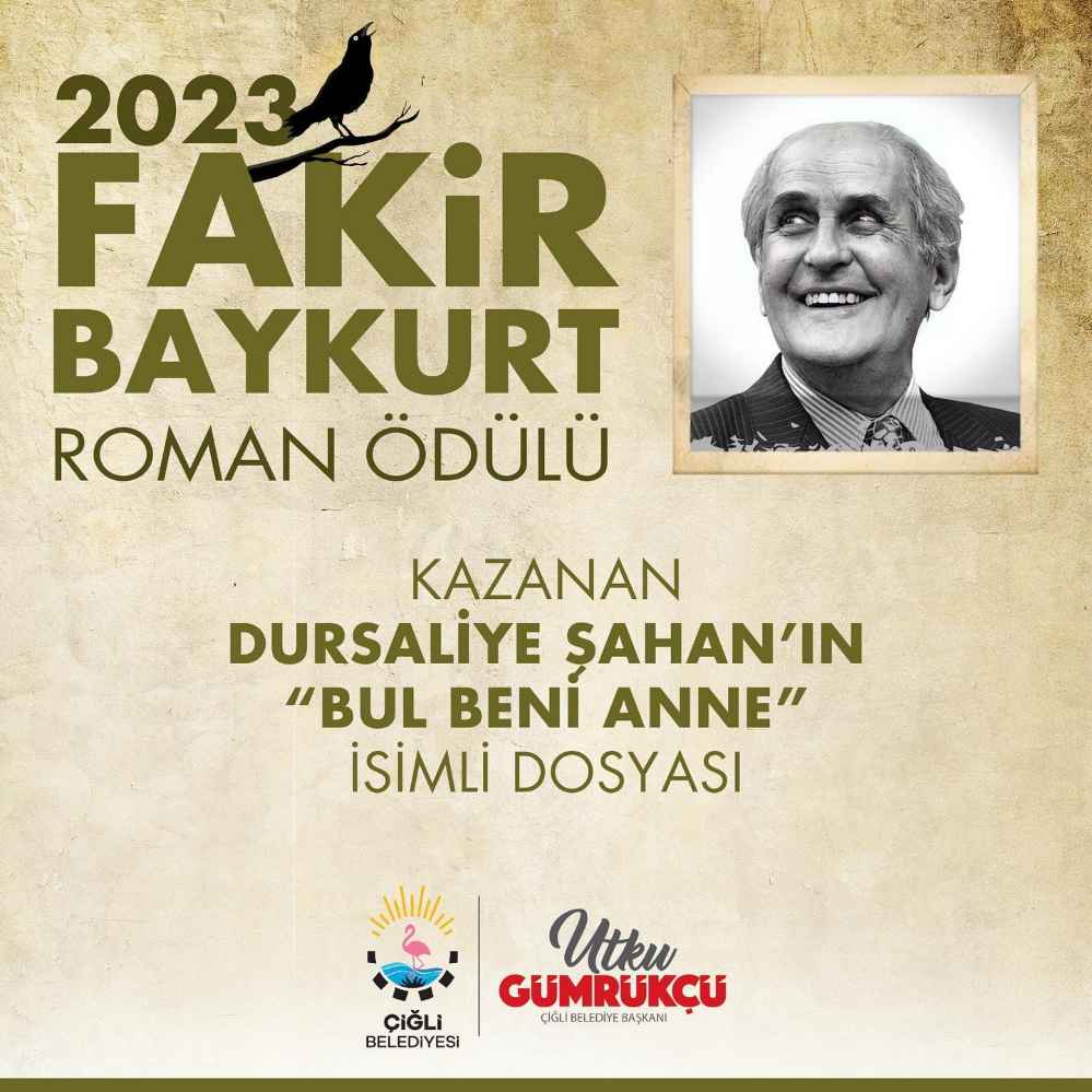 Çiğli Belediyesi tarafından geleneksel olarak düzenlenen Fakir Baykurt Roman Ödülü'nün 2023 yılı kazananı “Bul Beni Anne” isimli dosyasıyla Dursaliye Şahan oldu.