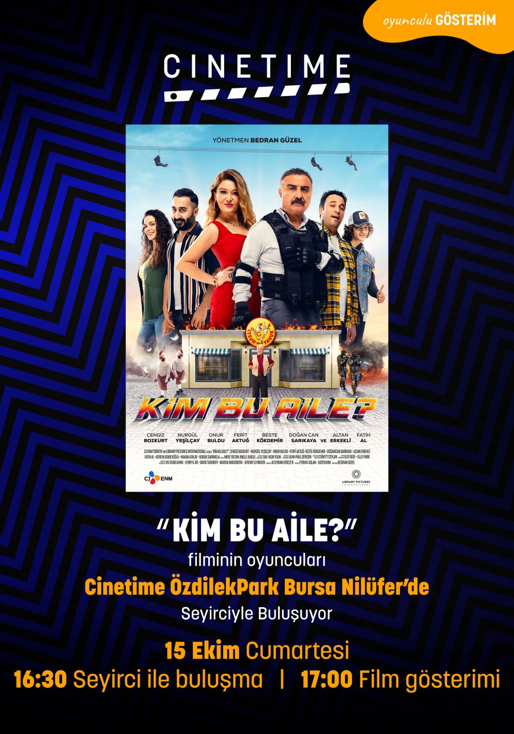 ‘KİM BU AİLE?’ filminin oyuncuları Nurgül Yeşilçay, Cengiz Bozkurt, Onur Buldu ve yönetmen Bedran Güzel, Cinetime ÖzdilekPark Bursa Nilüfer’de gerçekleştirilen özel gösterimle Cinetime ÖzdilekPark Bursa Nilüfer’de izleyicinin karşısına çıkacak.