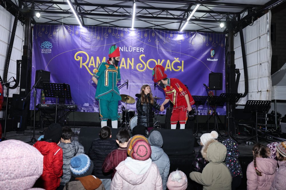 Nilüfer Belediyesi Halk Evi önünde kurulan Nilüfer Ramazan Sokağı’nda çocuklar için de ilgi çekici etkinlikler yapılıyor. Hacivat ve Karagöz ile sihirbaz gösterisine çocuklar yoğun ilgi gösterirken, ziyaretçiler de alanda bol bol fotoğraf çektirmeyi de ihmal etmiyor.