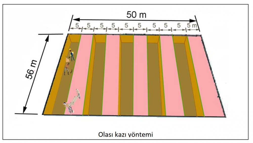 Bu bulgulara göre ortalama olarak 1 saatte 0.5 m3 toprağın kazılması, kürekle dışarı atılması ve atıldığı yerden de gömü sahası dışına çıkarılması için 3 işçi gerekmektedir.