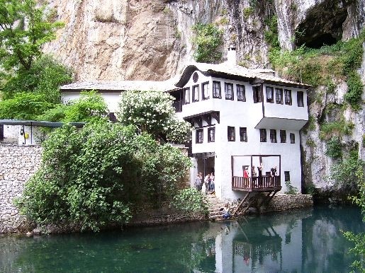 Bu adı geçen büyük havuzun kenarındaki kayalara bitişik Mostar Müftüsü (—) Efendi bir Halvetî tekkesi inşa etmiştir. Bir köşkü Buna Nehri'ne bakıp tüm âşıklar, maarif erbabı ve gönül ehli bu köşkte ve bu tekkenin kameriyelerinde oturup guv guy has sohbetler ve ilim sohbetleri ederler. Nice zarif dostlar havuz içinde olan türlü türlü balıkları ve Rabbimin nimetlerini seyrederler ki her balık onar, on beşer ve yirmişer okka gelir, sanki yaldızlı Tanrı sanatı balıklar var ki insan baktıkça hayran olur.
