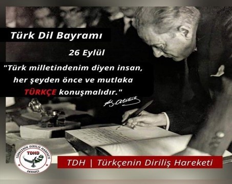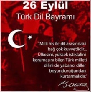 Yurdumuzun kurtarıcısı, cumhuriyetimizin kurucusu, Türkün atası büyük Türk başbuğ Atatürk’ün katılımıyla 1932 yılında düzenlenen I. Türk Dili Kurultayı’nın açılış günü olan 26 Eylül’ü, her yıl “Türk Dil Bayramı” olarak kutluyoruz